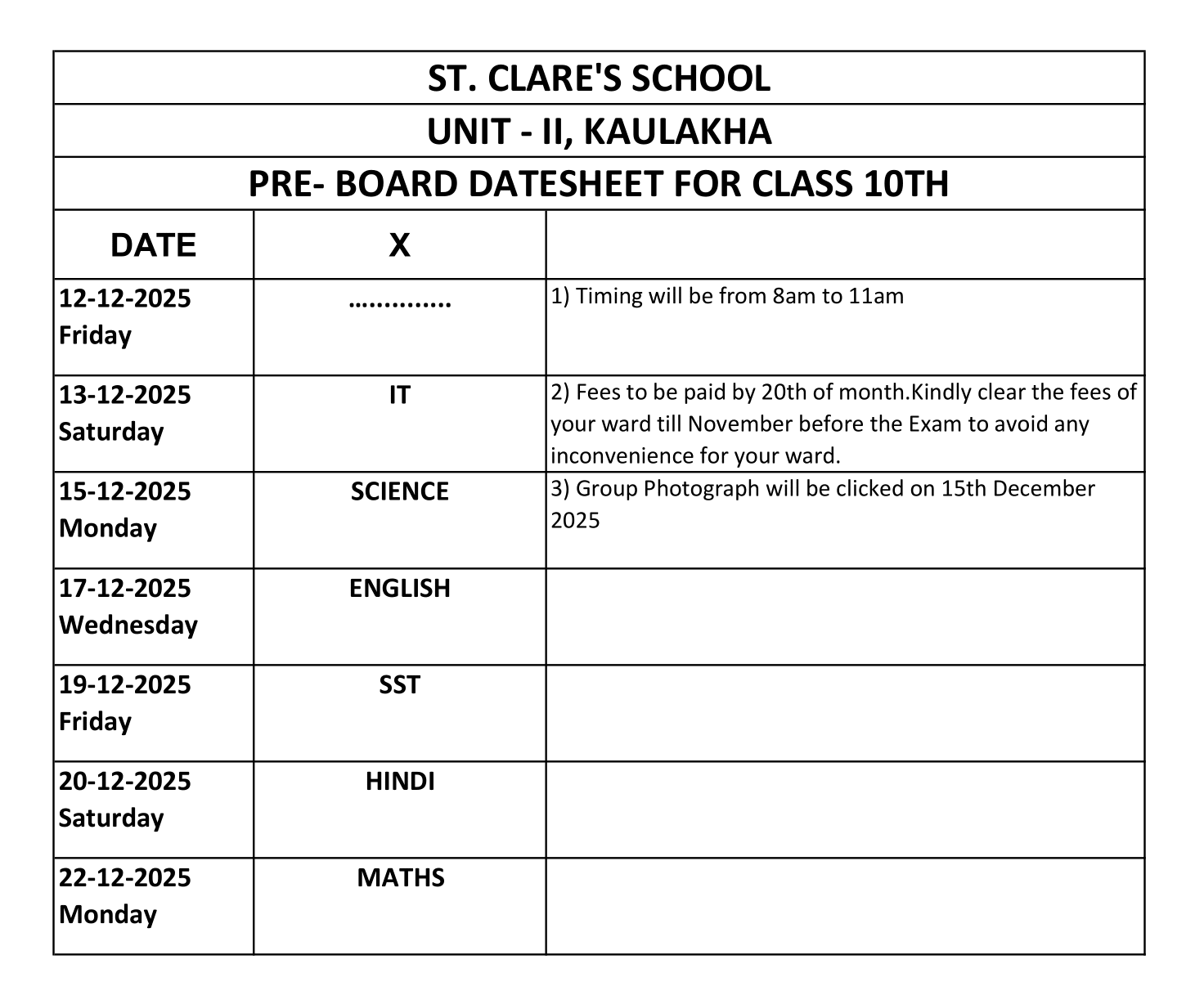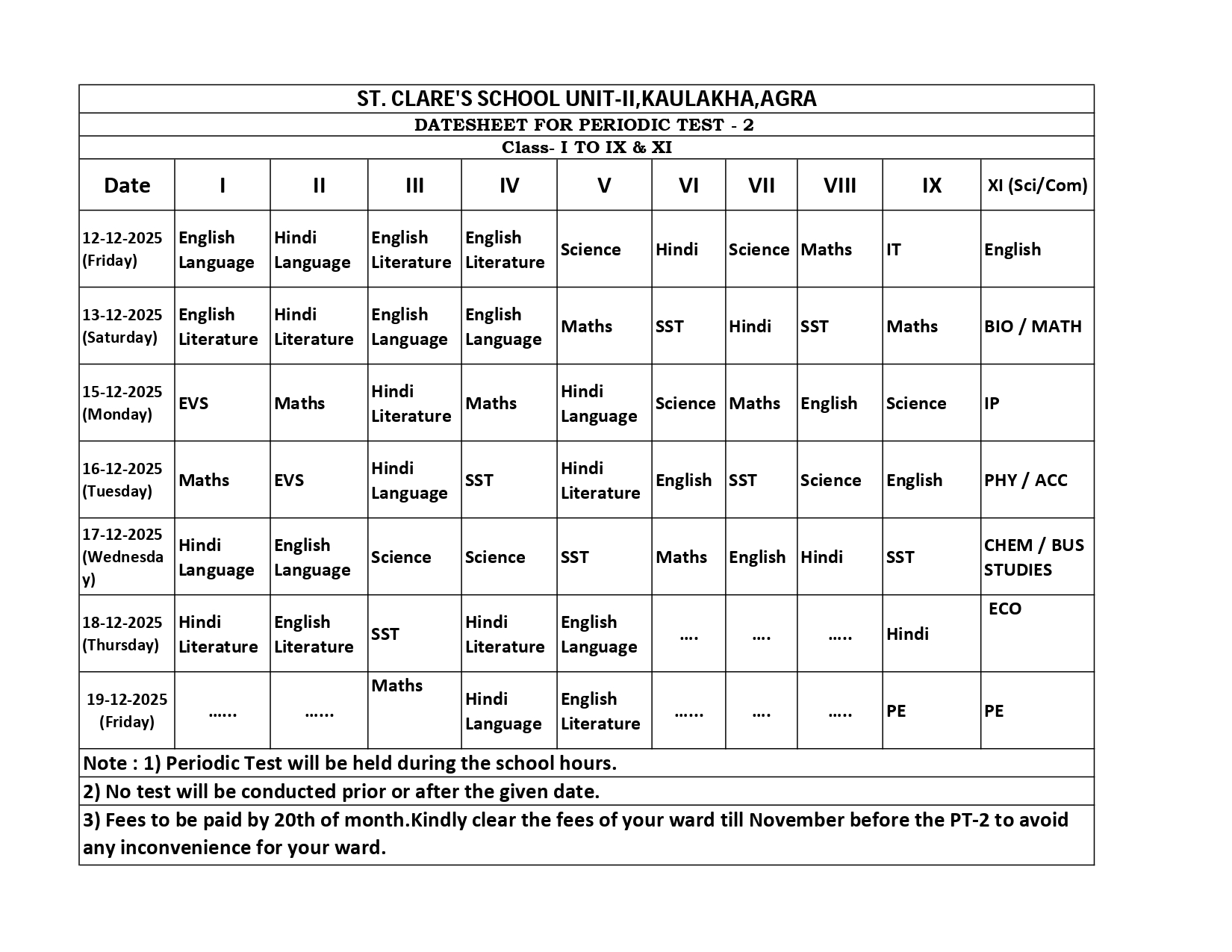 DATESHEET FOR PERIODIC TEST - 2